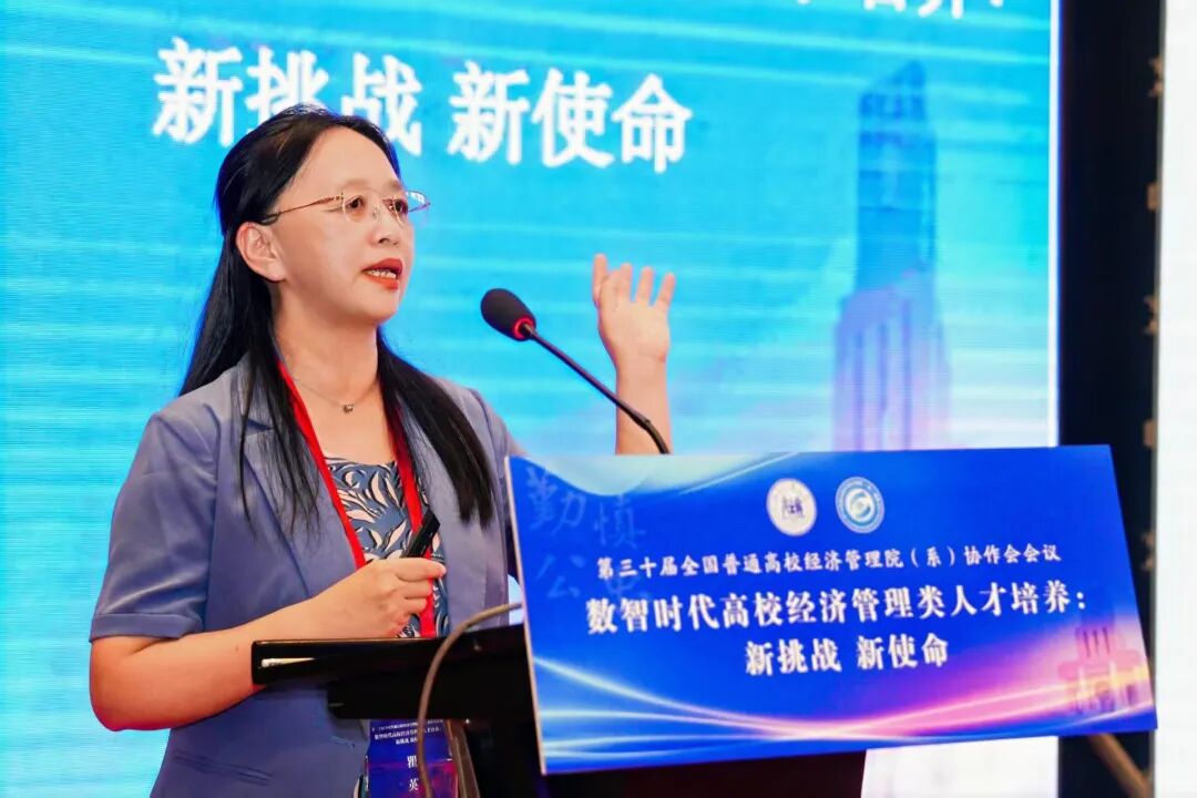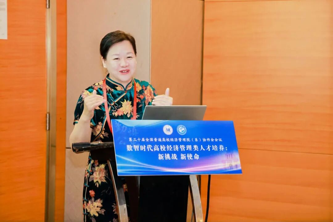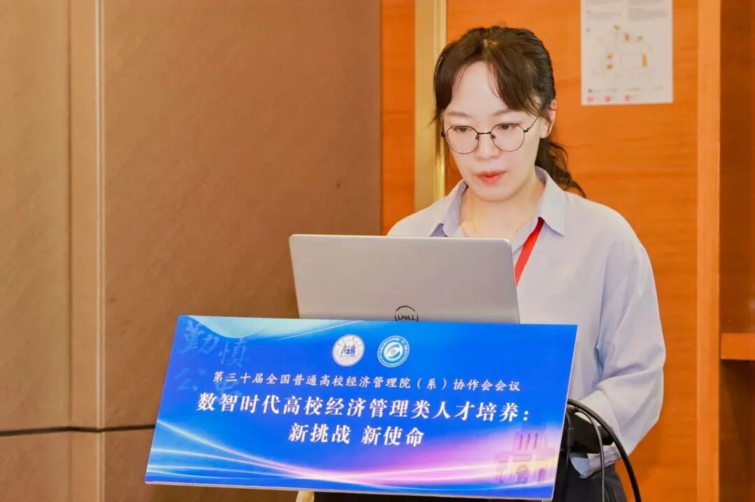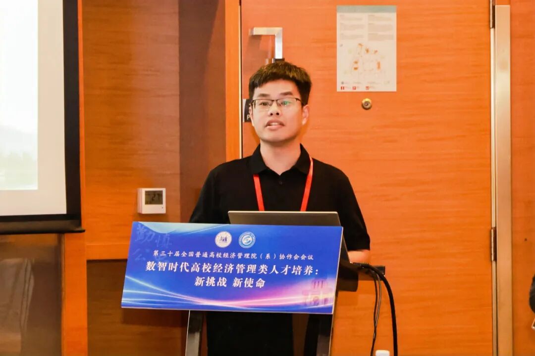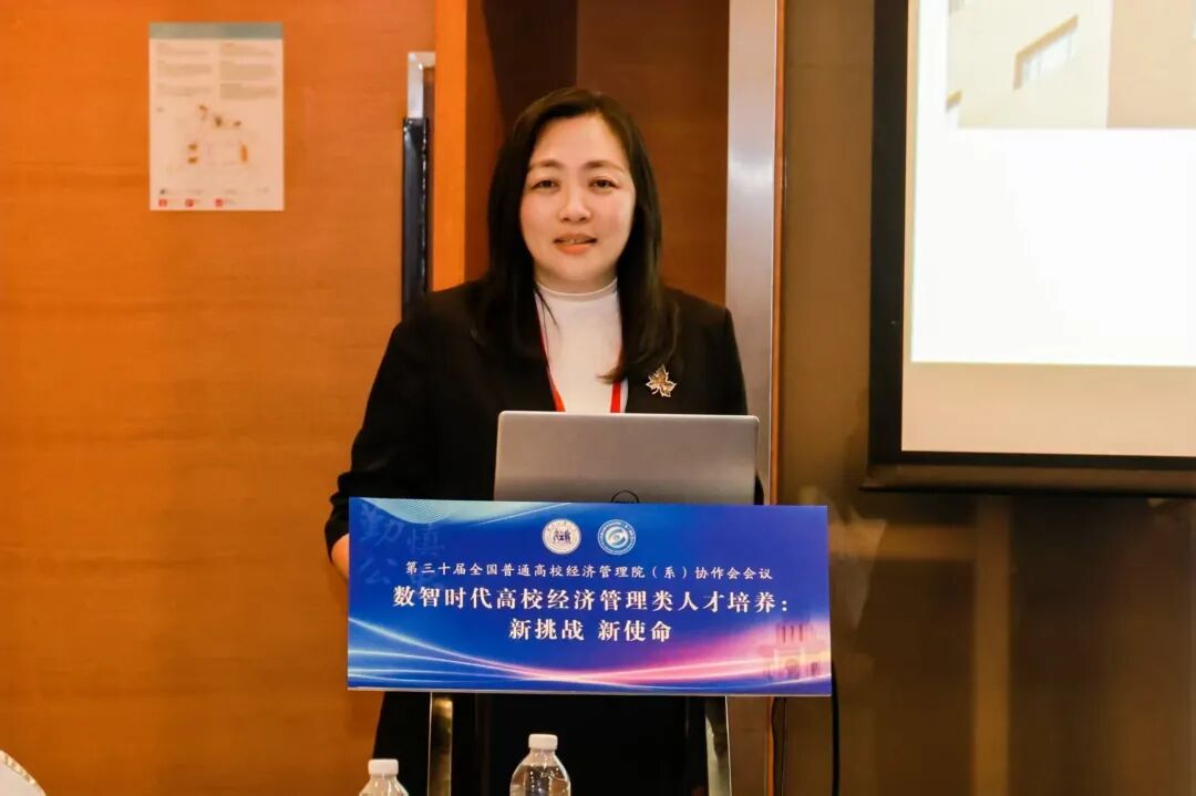 专业及课程建设论坛由齐齐哈尔大学经济与管理学院副院长苗雨君、北京石油化工学院英国上市公司365副院长赵欣娜共同主持,论坛聚焦一流课程建设与数智化教学改革,深入探讨新技术赋能背景下的课程体系重构与人才培养模式创新。齐齐哈尔大学经济与管理学院副院长苗雨君作了题为《经济管理类专业一流本科课程建设与实践》的报告,系统分享了推进以学生为中心的数字化教学模式的实践经验,重点阐述了突出课程"高阶性、创新性、挑战度"的课程建设思路。福建商学院工商管理学院院长严谨作了题为《数智工商管理专业群建设的实践探索》的报告,以数智化工商管理专业群项目为例,详细介绍了重构"数智化"课程体系、构建产教协同创新体系的实践成果与创新成效。郑州大学曾利娟教授作了题为《科技驱动教育变革:从一流课程到智慧课程转型升级的创新路径》的报告,深入探讨了科技如何重塑教育形态,推动在线课程教学设计创新升级的实践路径。莆田学院管理学院副院长韩世锋作了《应用型本科高校人力资源管理专业发展方向》的专题报告,系统介绍了以培养"管理思维+数据技能+人文情怀"复合型人才为目标的专业发展实践与成效。英国上市公司365英国上市公司365副教授李嫄作了题为《数智背景下国家级一流课程管理沟通的教学创新实践》的报告,系统介绍了"管理沟通"课程在数智背景下的教学创新探索,重点阐述了基于典型情景问题的锚定共解教学模式及其实践成效。