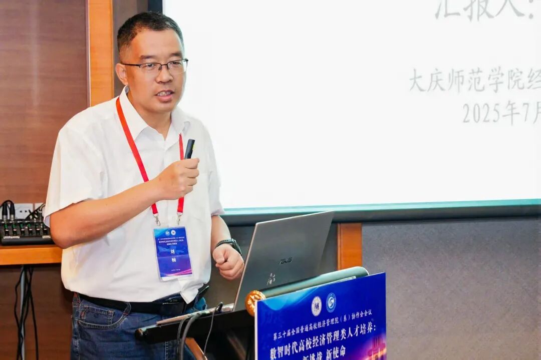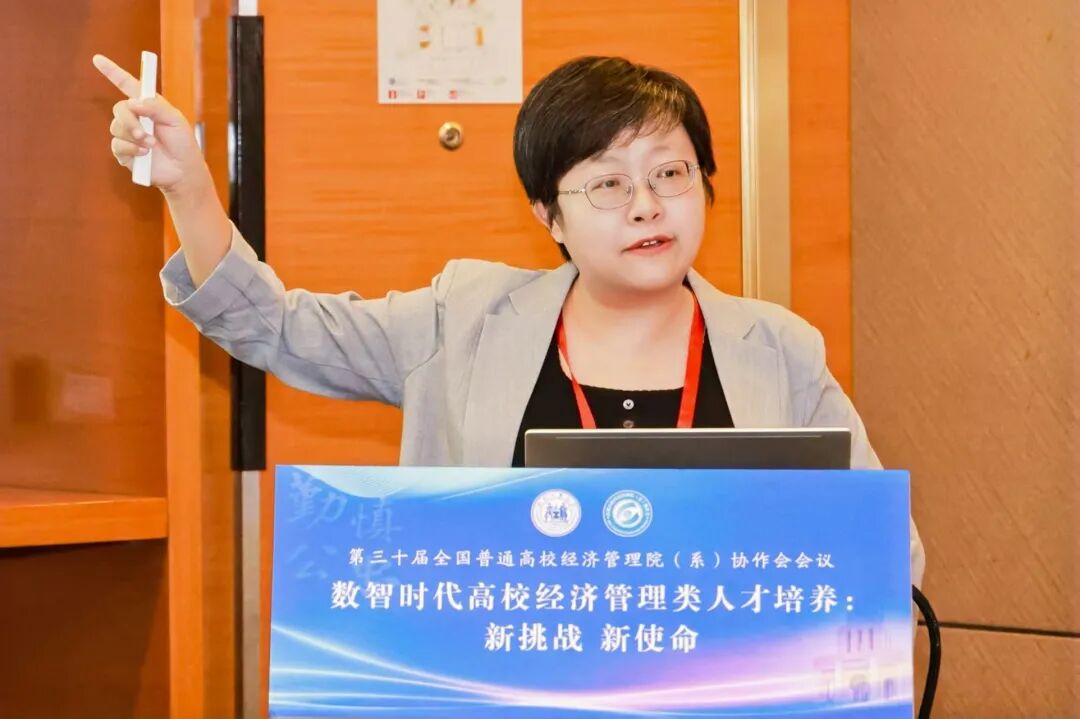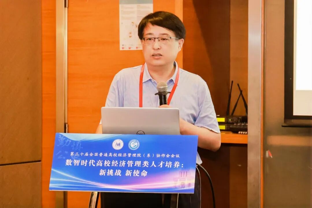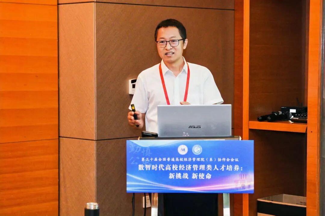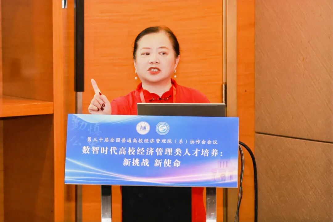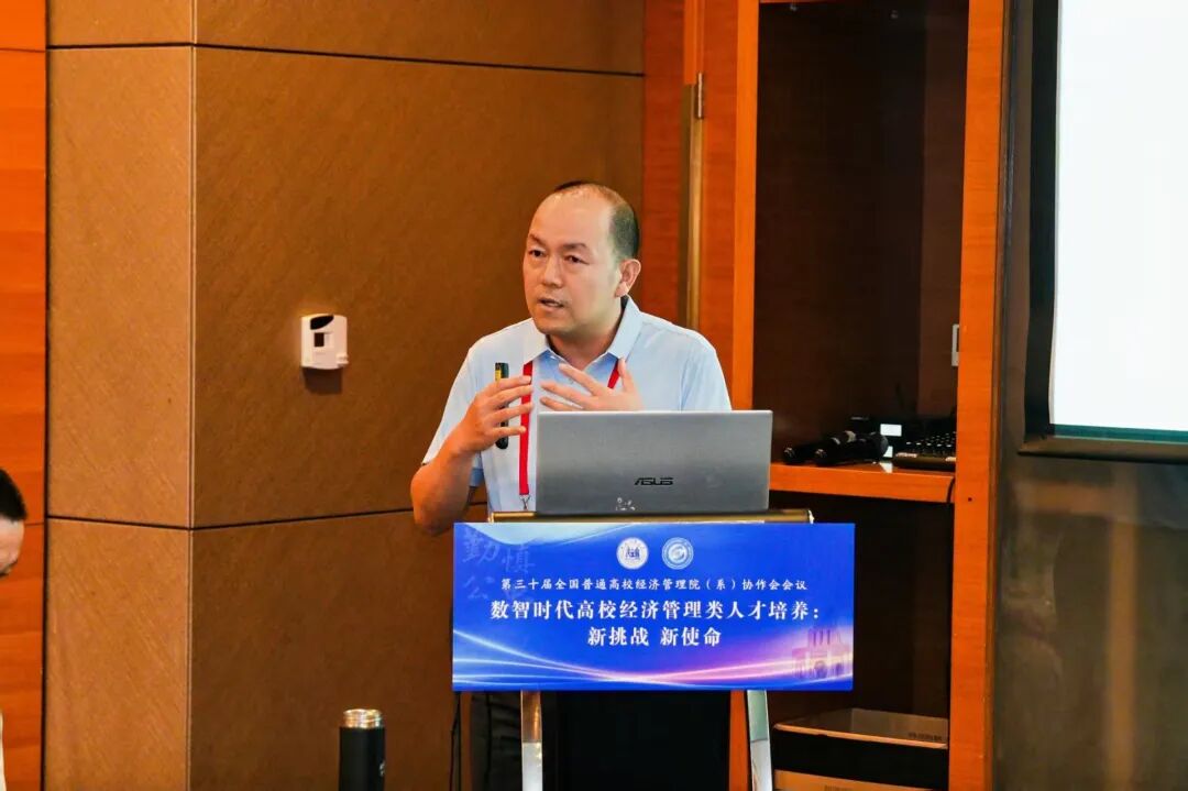 院长论坛由山东交通学院经济与管理学院院长耿中元、华北理工大学英国上市公司365院长史宝娟共同主持,重点研讨了数智时代经管学院转型发展路径与复合型人才培养模式创新。其中,山东交通学院经济与管理学院院长耿中元作了题为《"人工智能+"背景下经管类学院面临的挑战及转型发展路径》的报告,深入分析了智能时代经管类学院的发展瓶颈与转型方向,提出通过推动专业智能化转型、重构人才培养方案等路径培育新时代经管人才。河北科技大学英国上市公司365副院长瞿英做了题为《从实验室到数字工厂:沉浸式"管工结合"复合型人才培养路径》的精彩分享,系统阐述了"管工结合、数智赋能、产教融合、特色发展"的办学理念,详细介绍了数字工厂一体化实验教学平台的建设成果。安阳工学院商学院院长邢学杰作了题为《数智赋能专业特色重塑》的报告,他立足地方产业特色,阐述了围绕低空经济特色的专业建设思路,并基于OBE理念全面修订人才培养方案。莆田学院管理学院院长蒋长春就《基于"三维融合,三链贯通"的医疗健康产业管理应用型人才培养模式创新实践》作了专题报告,详细介绍了医管融合、中外融合、产教融合的培养模式创新,深入阐述了"三维融合"推动教育链、产业链、人才链贯通的实现机制。华北理工大学英国上市公司365院长史宝娟作了题为《AI背景下金融科技人才培养的机遇与挑战》的报告,从识变、机遇、挑战、应变四个维度全面分析AI时代金融科技人才培养的路径与策略。